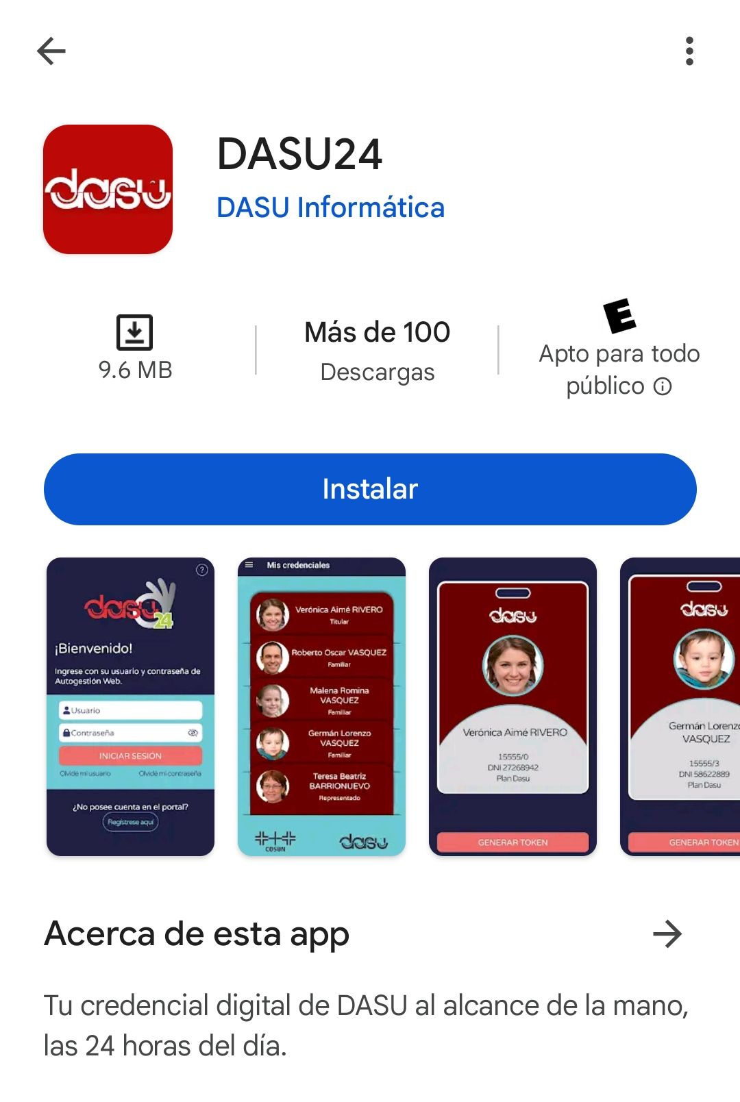 Actualmente DASU24 solo está disponible para dispositivos Android. Si posee un iPhone debe utilizar el portal DASU Autogestión, en donde podrá generar los tokens que se le requieran.