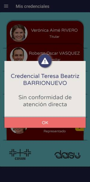 Los familiares con su propia cuenta de DASU Autogestión pueden ver únicamente su credencial.