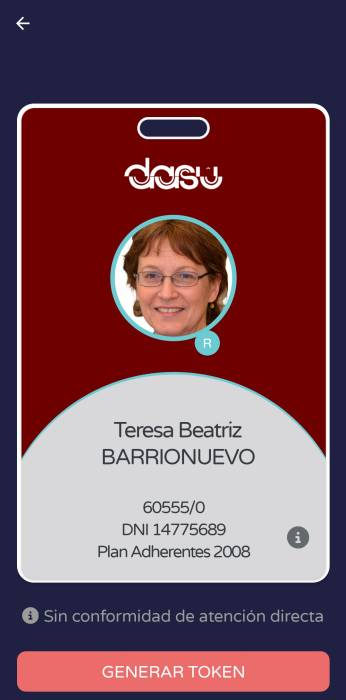 DASU24 es una aplicación para celulares que permite al afiliado acceder a su credencial digital, además de generar tokens para validar su identidad frente a los prestadores de Atención Directa. El token reemplaza la firma del afiliado.